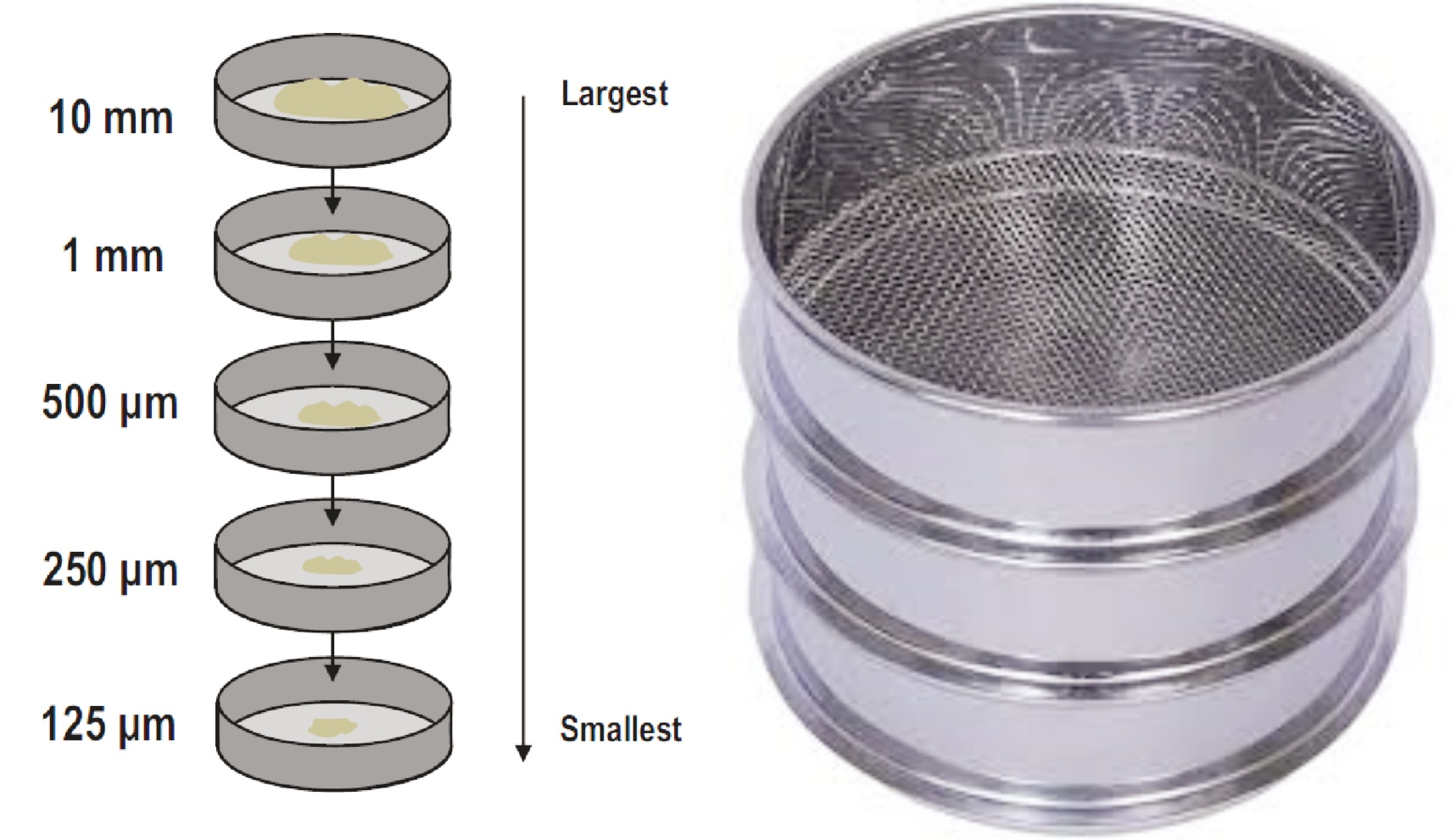 By using a series of sieves with different mesh sizes, the chemical powders sample can be separated into components with multiple particle size ranges.