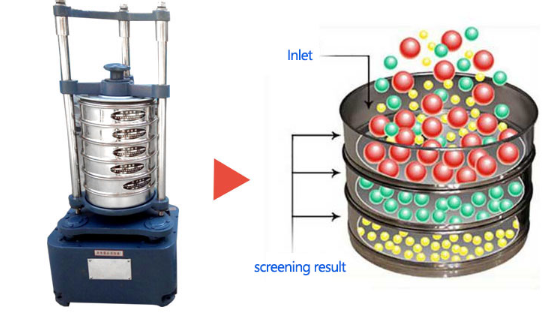 The Mechanical Sieve Shaker consists of a screen box, a vibrator, a support device, and a transmission system. The screen box contains a screen mesh, and the vibrator drives the screen box to generate high-frequency vibration, causing the material to separate into layers on the screen surface and completing particle size separation.