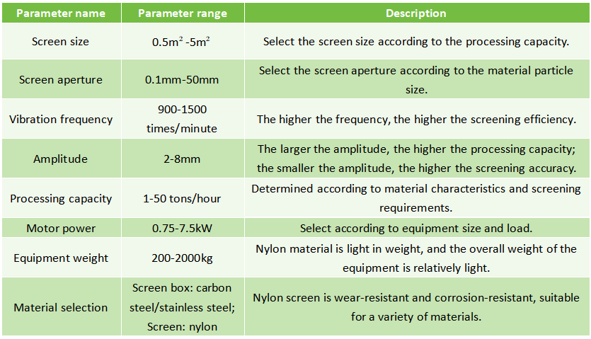 Nylon sieve shaker is mainly composed of vibration motor, screen box, nylon screen, support device, vibration damping spring, etc. The screen box carries the screen and materials, usually made of carbon steel or stainless steel. Nylon screen is the core component for screening materials, with the characteristics of wear resistance, corrosion resistance, and anti-blocking.