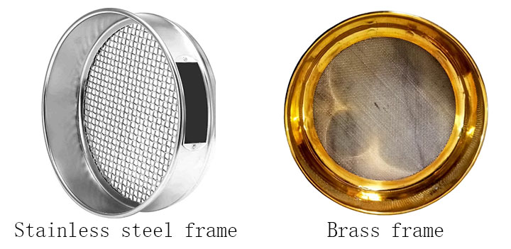 Stainless Steel Frames and Brass Frames: Stainless steel frames are high-strength, not easily deformed, and will not rust when exposed to moisture, making them suitable for humid environments or water-washing sieving. However, they are slightly heavier, making them more difficult to handle. Brass frames are relatively soft and prone to slight deformation under stress. Long-term stacking and vibration can affect mesh precision, and they can oxidize and discolor in humid environments. However, they are lightweight and more suitable for short-term, dry-environment sieving of small quantities of samples.