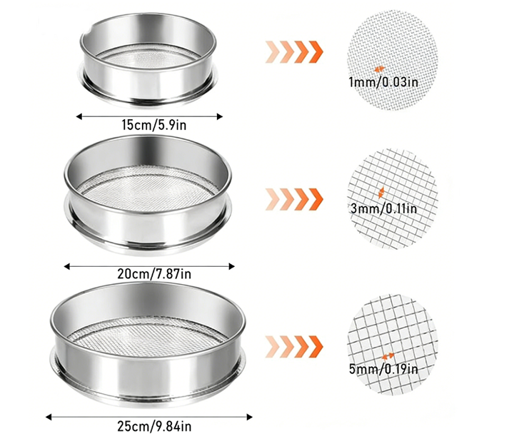 The Test Sieve for Soil Particle Analysis separates soil particles of different sizes through physical grading, clearly showing the proportions of various particle sizes. The sieve covers a common particle size range from 0.075 mm to 60 mm, and can be used for both dry and wet sieving to suit different soil types. Its durable material and various specifications make it suitable for both precise laboratory testing and on-site or field operations. In civil engineering construction, farmland management, environmental remediation, and scientific research, the test sieve helps to understand soil structure more intuitively, providing a reference for subsequent treatment or research.