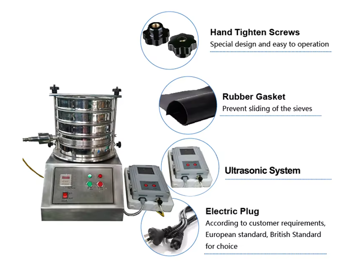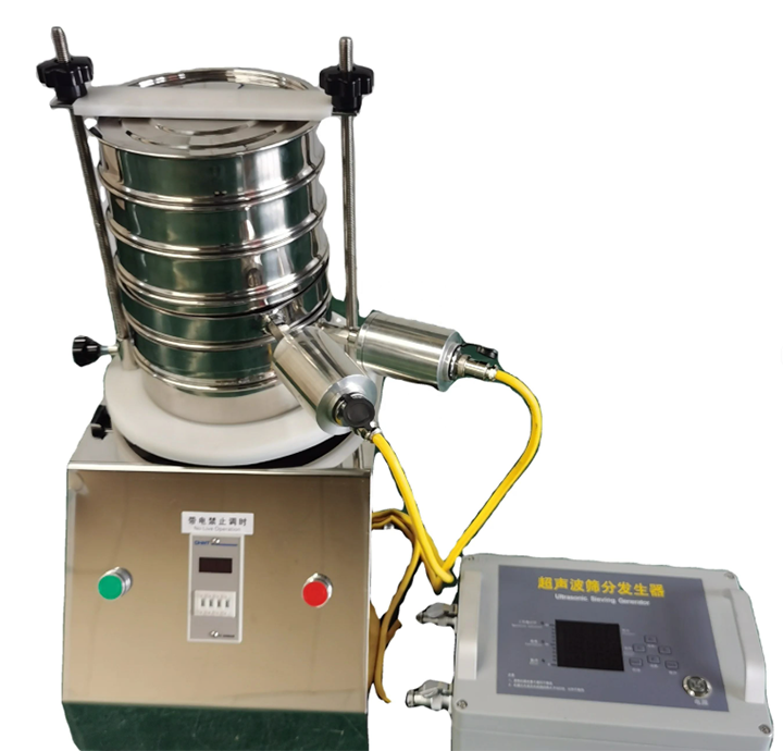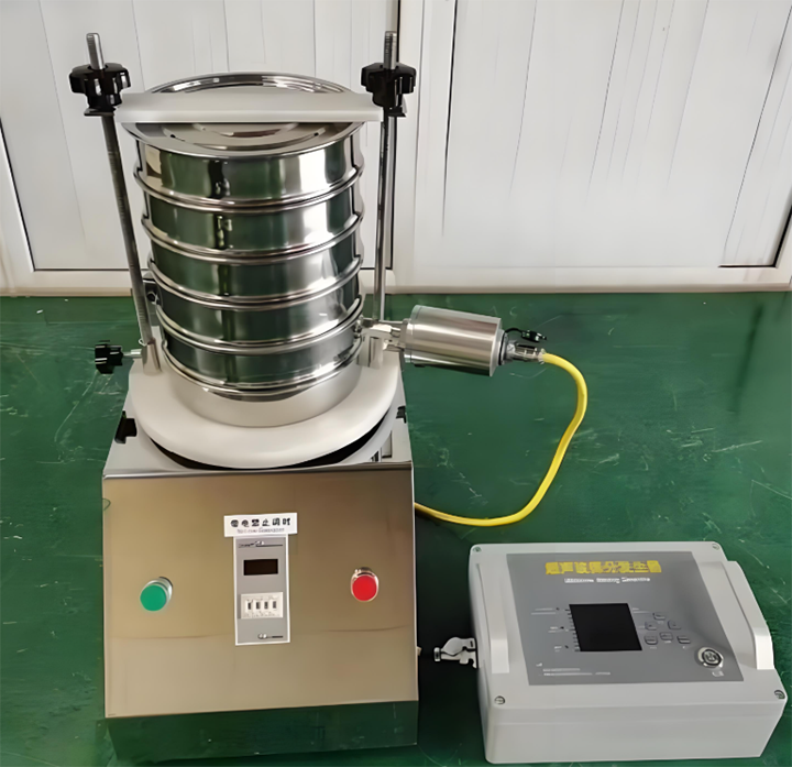 Ultrasonic test sieves are used in laboratories, research institutions, and quality testing. The standard screen size is φ200 or φ300 mm, suitable for sieving small quantities of samples. The equipment is compact and can be placed on a table or in other compact settings to perform particle size testing, composition analysis, or sieving behavior studies on trace powders and particles. The ultrasonic system makes the analysis results more accurate and repeatable.