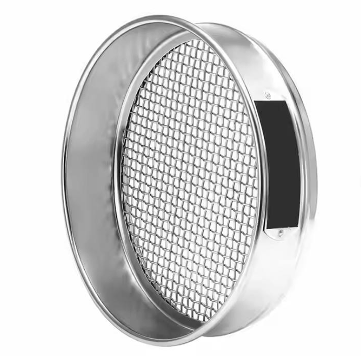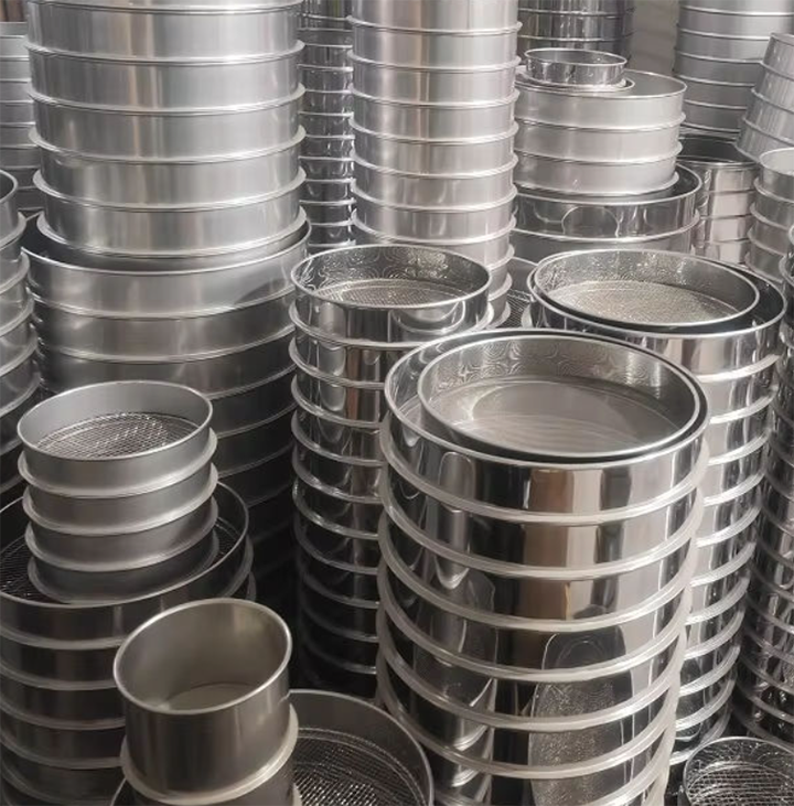 Sieve mesh materials include stainless steel wire mesh, brass mesh, galvanized steel wire mesh, and nickel mesh; stainless steel is the most commonly used due to its excellent corrosion resistance. Sieve frames are typically made of stainless steel, brass, or aluminum alloy; polymer sieve frames are chosen for some applications sensitive to chemical corrosion. Common sieve frame sizes are Φ200 mm, Φ100 mm, Φ300 mm, 8 inch, and 12 inch. The sieve design generally includes upper and lower pressure edge structures, equipped with rubber or silicone sealing rings to ensure no material leakage during sieving and to allow for a tight fit with a vibrating sieve machine.