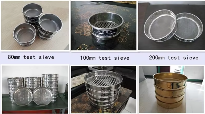 The test sieve for powder and material includes components such as sieve frames, sieve mesh, and support structure. Half-height or full-height sieve frames can be selected to accommodate different sample volumes. The sieve is precision-woven from stainless steel wire; for extremely fine powders, electroformed microporous sieves are also used. The supporting structure ensures the sieve does not deform during vibration or shaking. The test sieve separates powder components of different particle sizes by vibrating or shaking the powder material through the sieve openings.